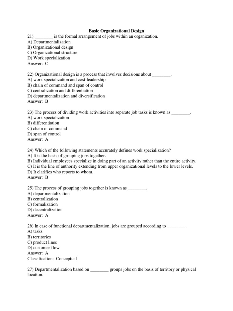 Quiz Chapter 10 1 The Formal Arrangement Of Jobs Within An Organization Is Known As A The Chain Of Command B Work Course Hero