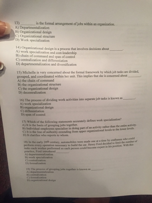 Solved 13 Is The Formal Arrangement Of Jobs Within An Chegg Com